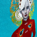 In response to the complexities of recent years, Natalie’s latest series offers a visual meditation on renewal. Each painting portrays serene, contemplative women with flowing white hair, embodying the winds of change and the passage of time. Intertwined among them are delicate paper cranes, signifying new beginnings, wishes fulfilled, and the quiet hope that carries us forward.