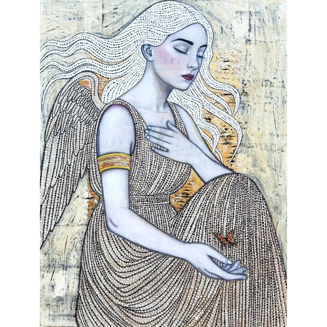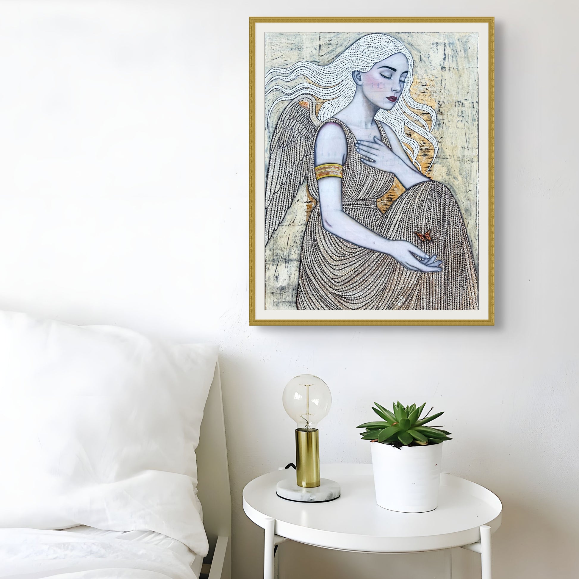 In this series, Natalie moves toward restraint and stillness. The figures that emerge are serene, introspective, and luminous - often depicted with flowing white hair and softened expressions, suggesting wisdom earned through lived experience rather than youth. These women exist not in a specific place or time, but within an in-between realm: a symbolic space where transformation gently unfolds.