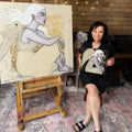 In response to the complexities of recent years, Natalie’s latest series offers a visual meditation on renewal. Each painting portrays serene, contemplative women with flowing white hair, embodying the winds of change and the passage of time. Intertwined among them are delicate paper cranes, signifying new beginnings, wishes fulfilled, and the quiet hope that carries us forward.