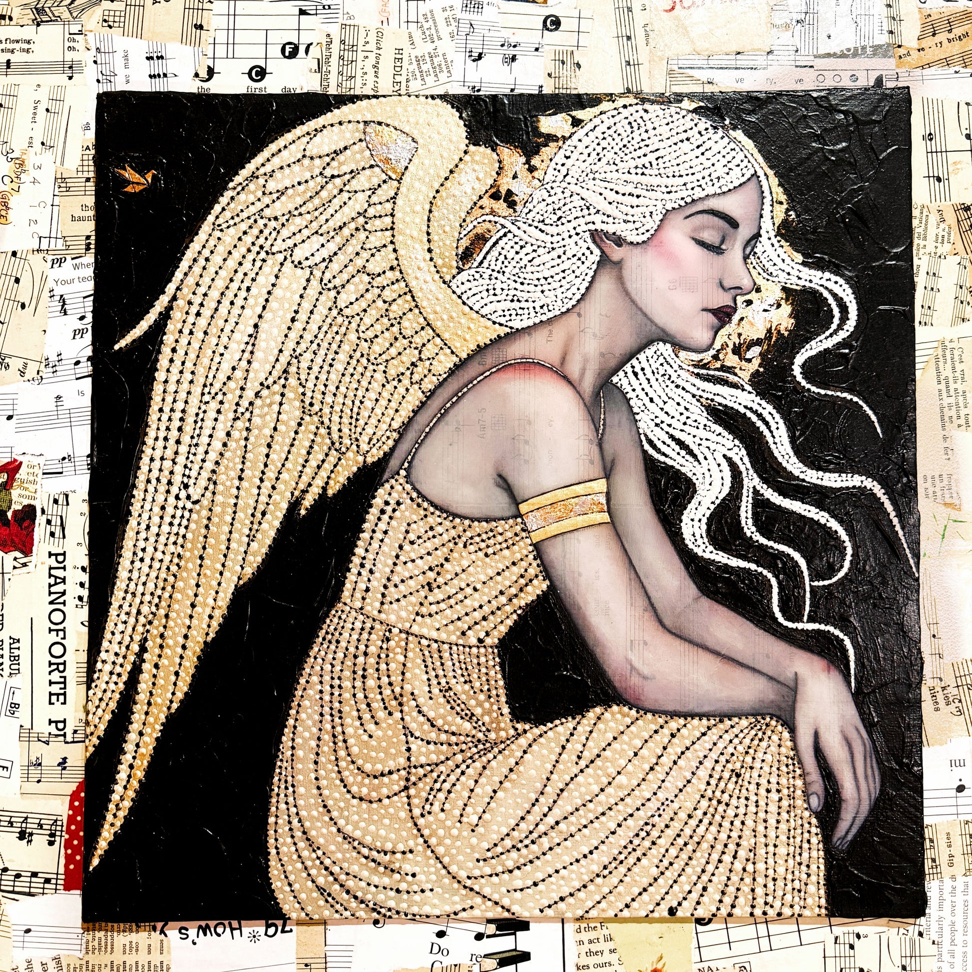 “My aim for these pieces is to evoke an emotional response through the simplicity and delicacy of the female form, juxtaposed against a richly textured background.”