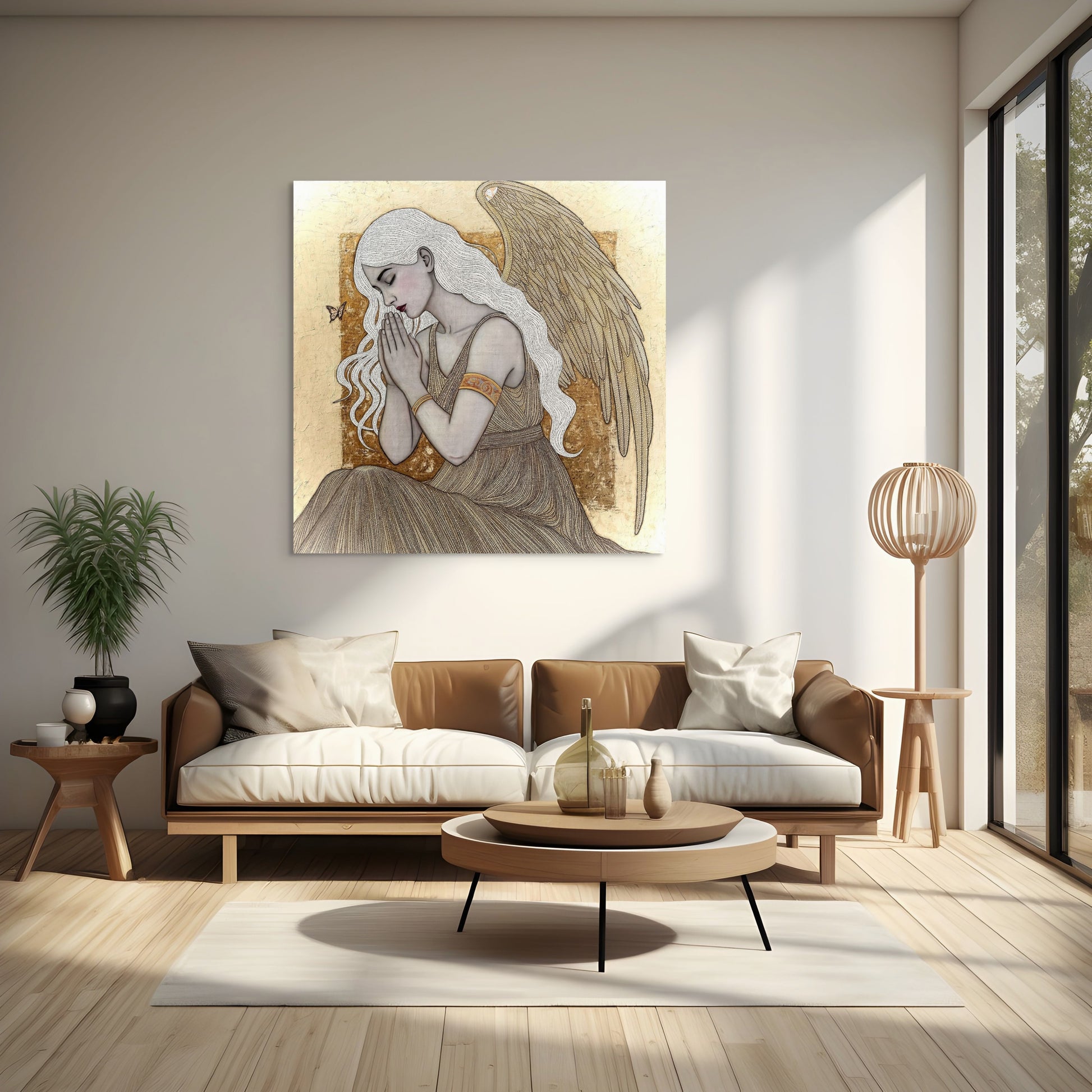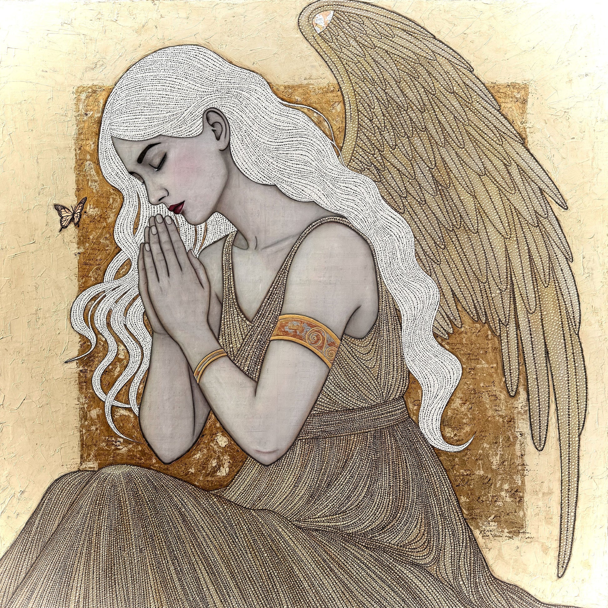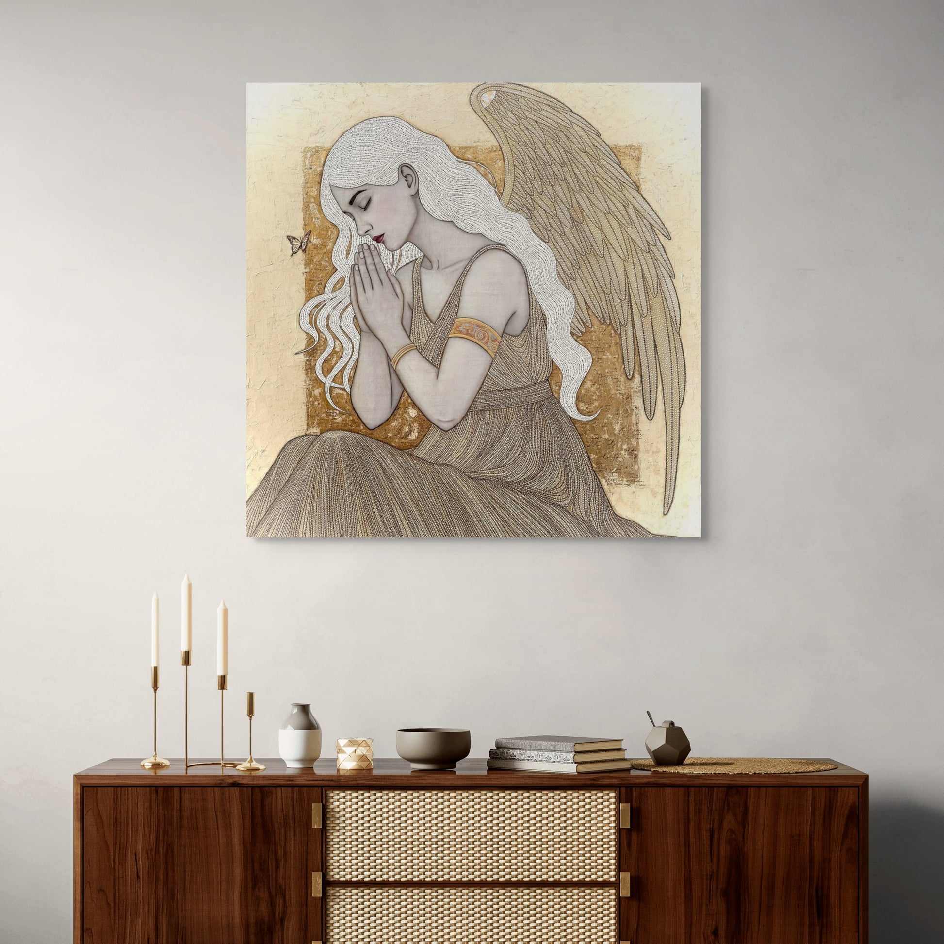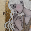 In this work, the figure is held in a moment of quiet devotion. Her hands are drawn inward, her posture softened, suggesting a space of reflection, reverence, and inner stillness. It is not a moment of asking, but of listening, a pause at the threshold where something deeper is being felt rather than spoken.