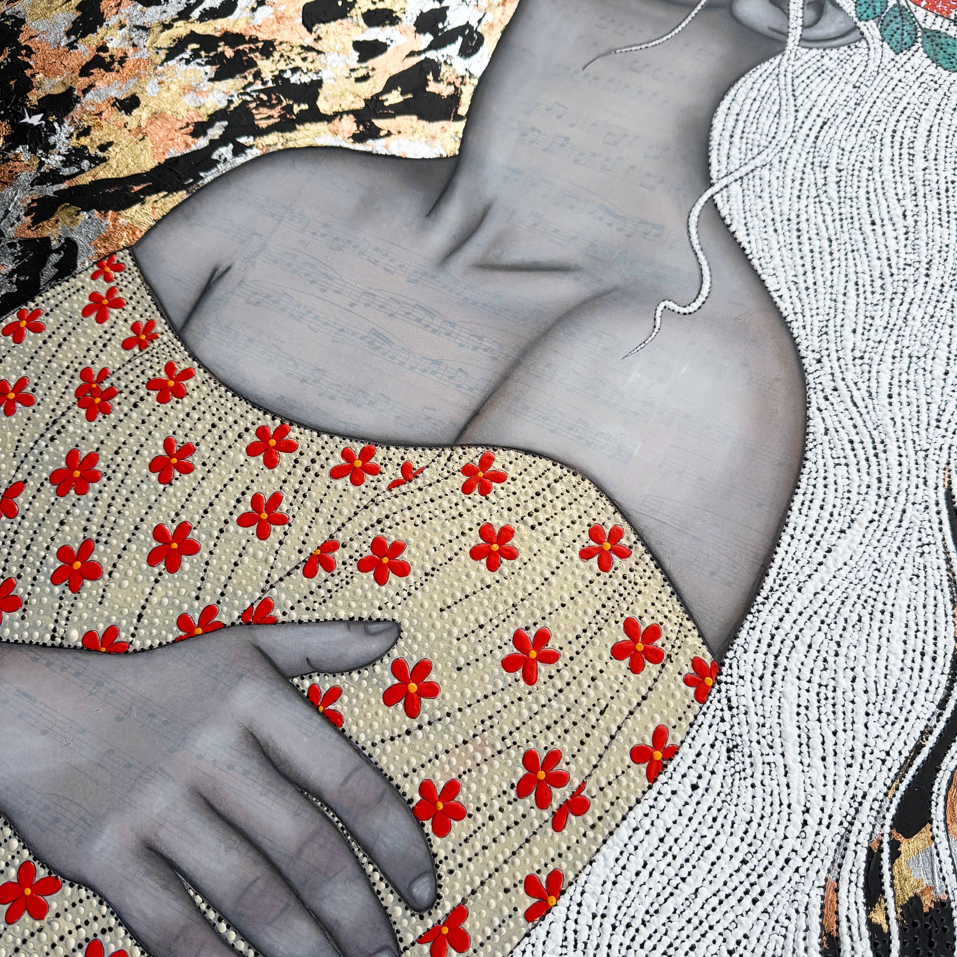 “My aim for these pieces is to evoke an emotional response through the simplicity and delicacy of the female form, juxtaposed against a richly textured background.”