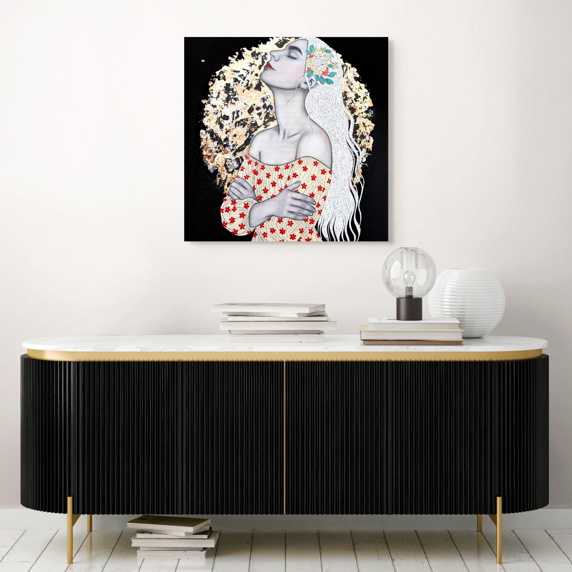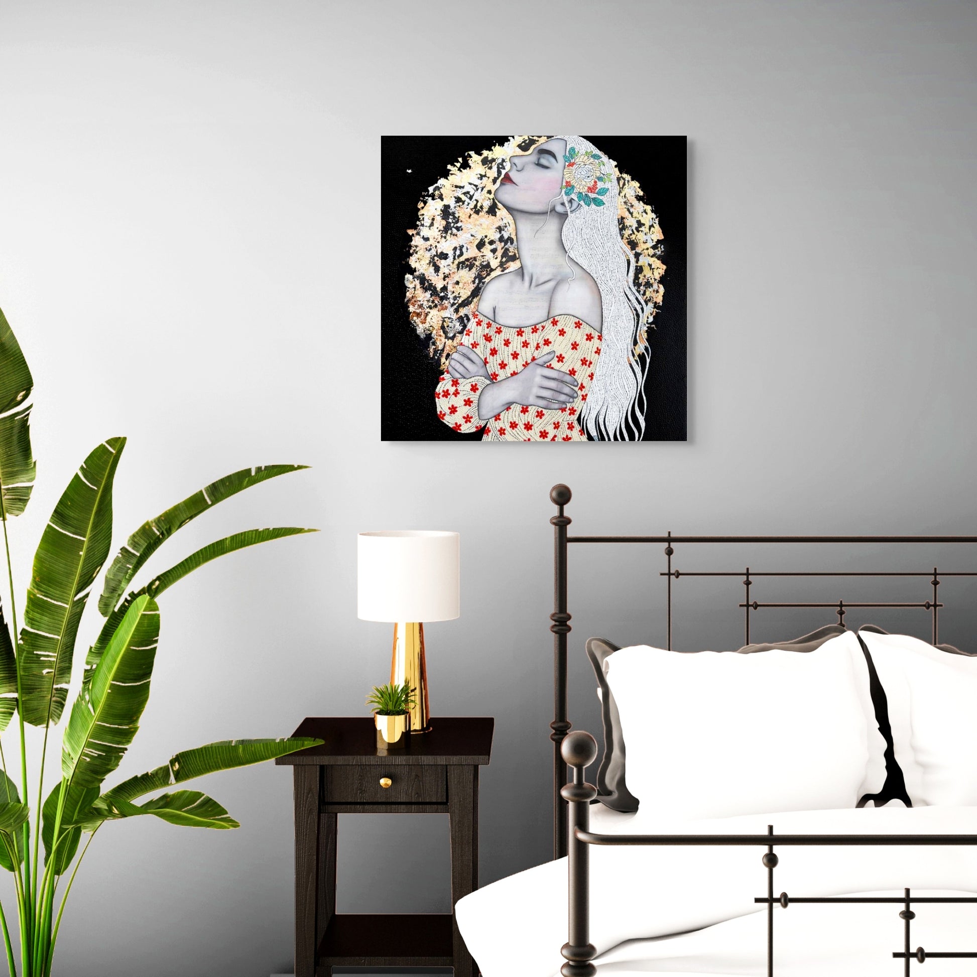 This piece is created on a 40mm frame-wrapped canvas, sealed with fixative and a triple gloss coat, gallery-finished edges, ready to hang.